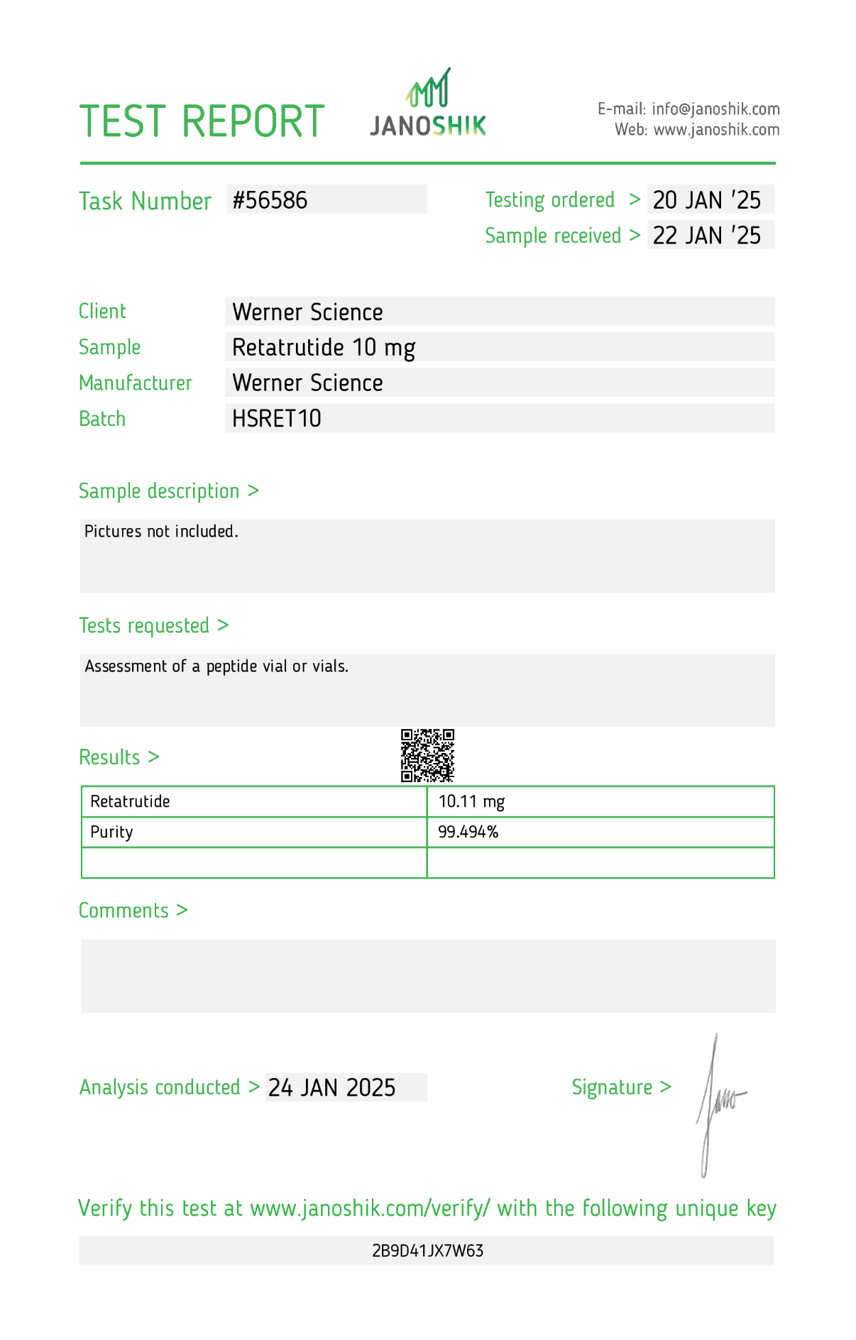 - Source: Werner Science, High-quality lab-grade peptide, Third-party tested