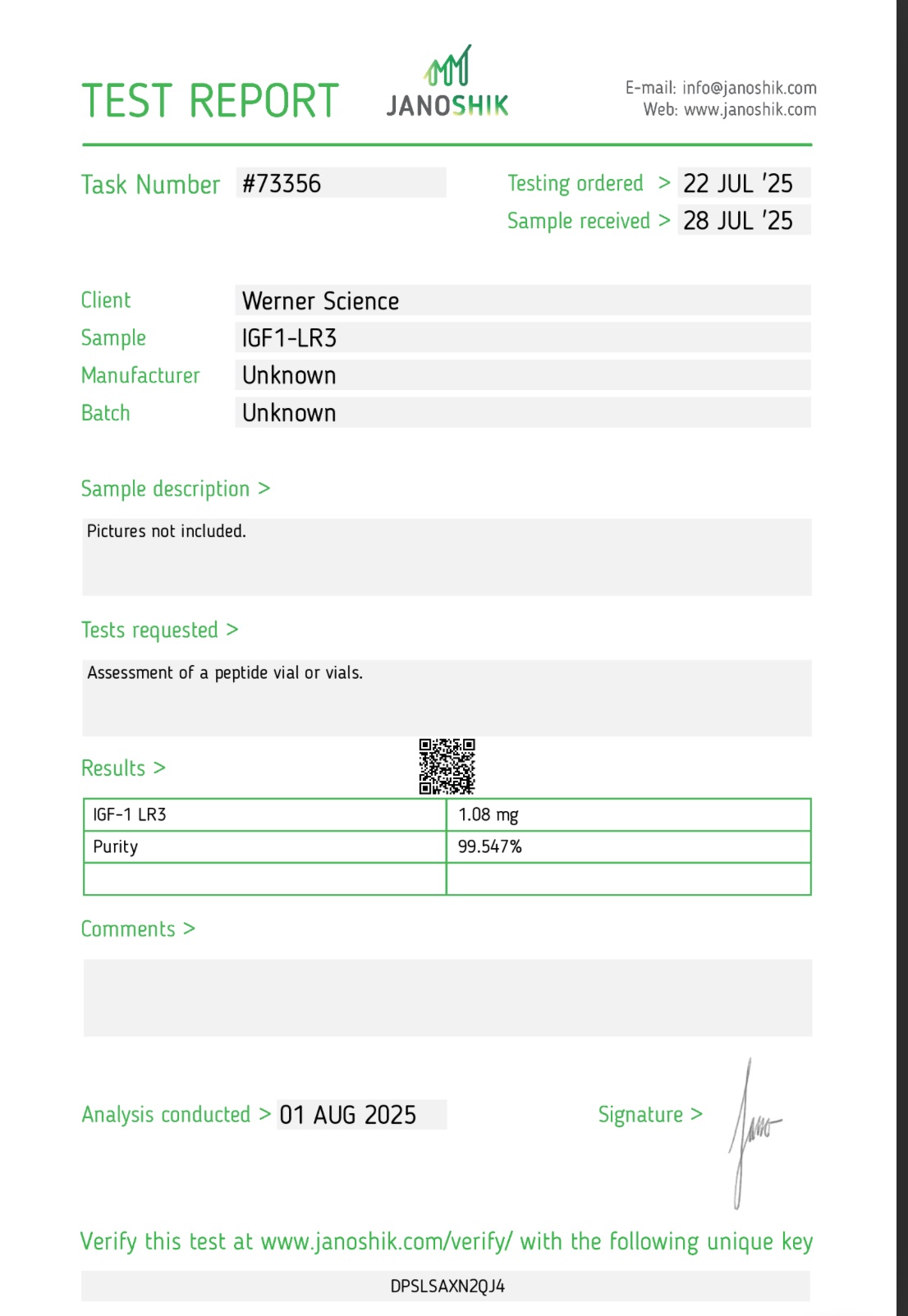 This information has not been reviewed or endorsed by the US FDA. It is provided solely for educational and research purposes. IGF-1 LR3 is not approved for medical use, human consumption, or as a therapeutic treatment.